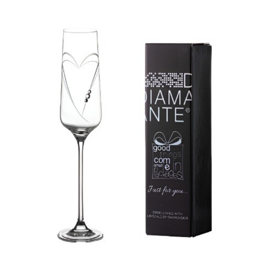 Diamante Champagne Flute with Heart Shaped Cutting - In Gift Box