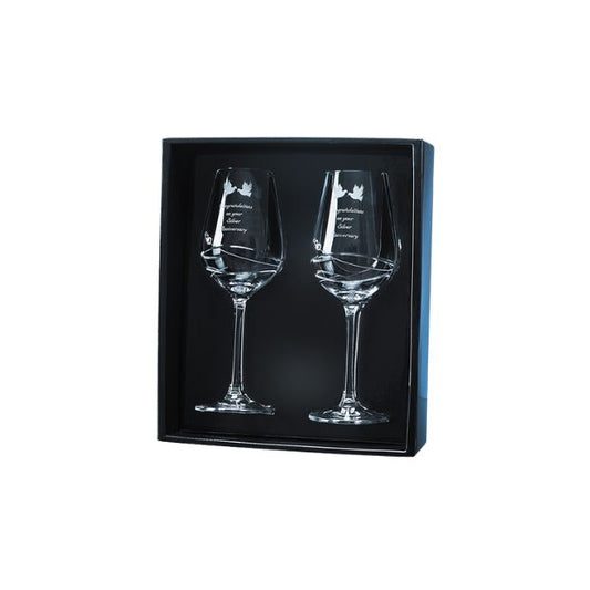 Diamante Wine Glasses with Spiral Design Cut - Set of 2 - In Gift Box