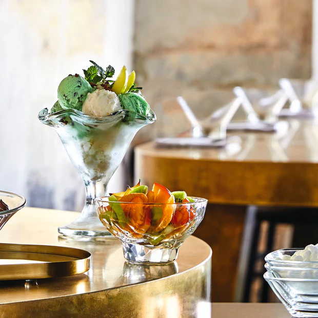 The Bormioli Rocco Primavera Dessert Glass blends classic elegance with practical design. Its wavy, flower-inspired shape and large capacity make it ideal for serving desserts like fruit salads, ice creams, and spoon sweets. The solid, wide base ensures steady grip and easy handling, while its vintage style adds charm to any retro-themed table setting. Elevate your dessert presentation with a cup that is as beautiful as it is functional.