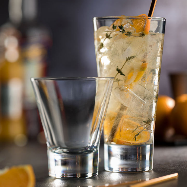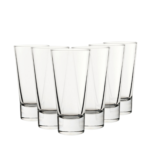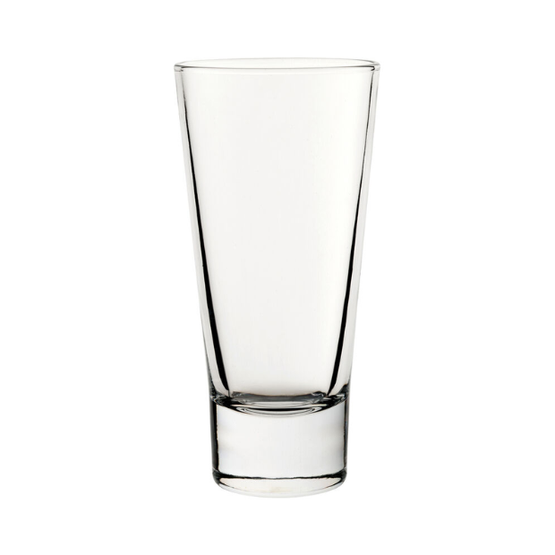 Elevate your drink service with the Ellipse Hiball Tumbler set of 6, each holding 320ml. Featuring a distinctive conical design and a sturdy heavy base, these tumblers offer a modern twist on classic glassware. Ideal for serving spirits and cocktails, their durable, machine-made glass ensures lasting clarity and strength. Dishwasher safe for effortless cleaning, this set combines style and convenience to refresh your home bar or hospitality setting.
